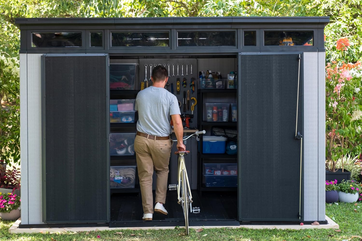11x7 Modern Resin Outdoor Storage Shed Kit-Perfect to Store Patio Furniture, Garden Tools Bike Accessories, Beach Chairs and Lawn Mower